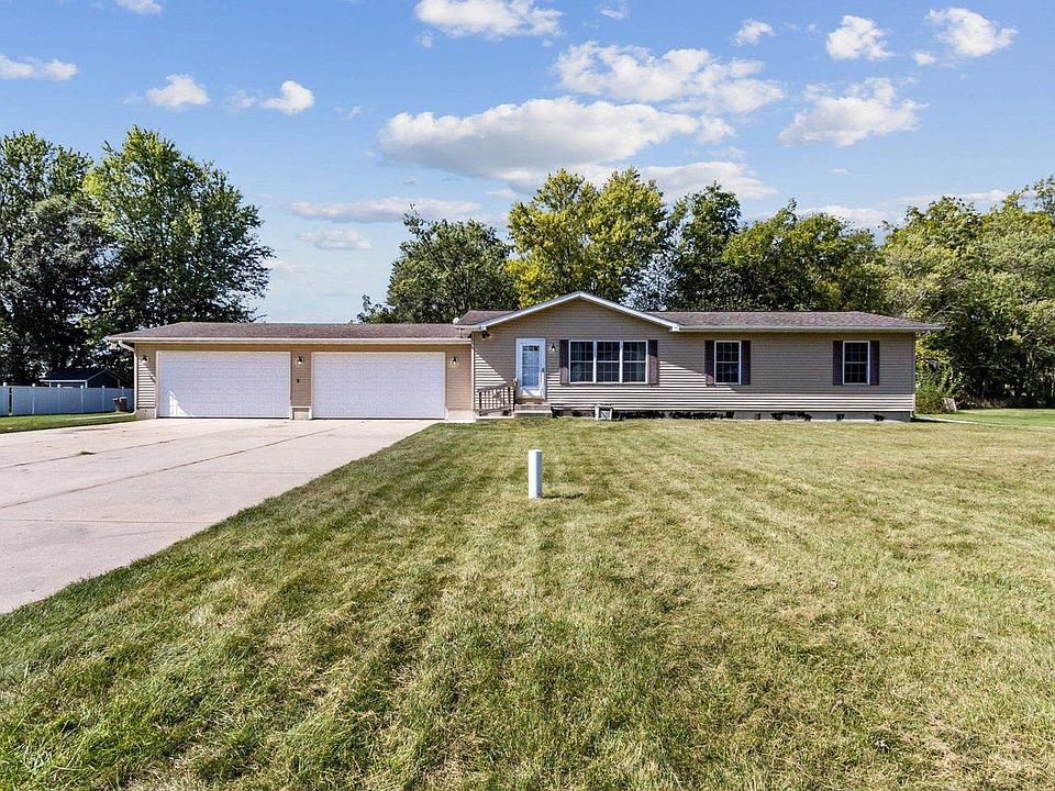 Welcome home! You don't want to miss out on this 3-bedroom 2 bath ranch home situated on .48 acres boasting a 4-car attached garage. Blending the convenience of country living while close to I-90 for commuters and minutes' drive into the city. This home is move in ready with an open floor plan great for entertaining, spacious bedrooms, master featuring en-suite and a large unfinished basement stubbed for 3rd bath just waiting for your design ideas. Outside you'll find a large private backyard with a newer stamped patio and easy to maintain landscape. Bring your vehicles, toys, or workshop gear ? plenty of space awaits!