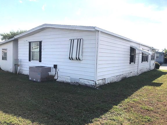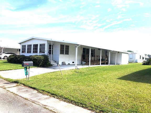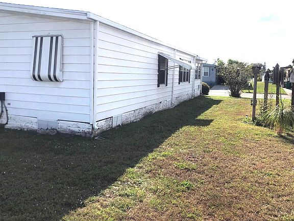 55+ Manufactured Home Community and you own your own land. Monthly community fee is $119.00. and HOA is voluntary at $20 yearly. 2 bedrooms, 2 baths, large carport and laundry room with washer and dryer. Handicap ramp. Living Room plus Florida Room. Kitchen breakfast bar. City water and City Sewer. Hurricane Shutters. Community has clubhouse, pool, pavilion and shuffleboard amenities. Closer to shopping, golf, churches and beaches. Want more? Call for your private showing.