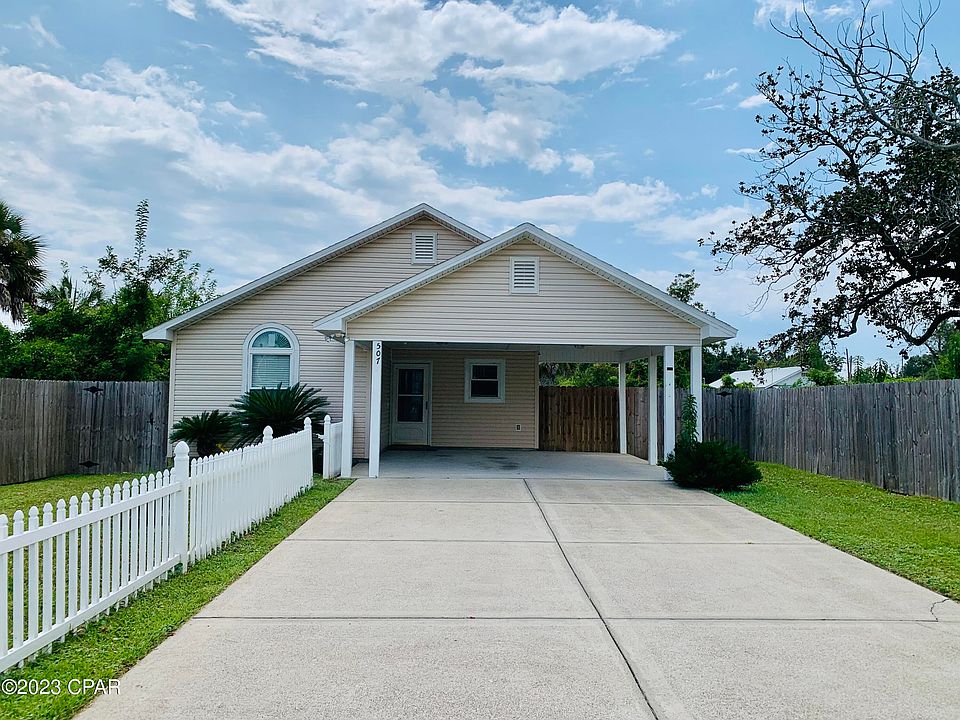 Lovely home in historic Shermans Add. The home is a short drive to Down Town Panama City, shopping, restaurants and Tyndall Air Force Base. Home features vaulted ceilings, open floor plan with split bedrooms, built-in security system, office and fireplace. The open floor plan is great for entertaining and the tile and laminate flooring makes for easy clean up. The master bedroom features an office that could be a nursery, hobby room or exercise room and a nice size walk-in closet. The back yard features a covered patio, privacy fence and two storage buildings that could have many uses. You will love the covered carport keeping your cars out of the hot sun. The exterior of the home is vinyl siding with vinyl trim for easy cleaning and maintenance. There are not too many nice homes on the market in this affordable price range so do not wait to see it.