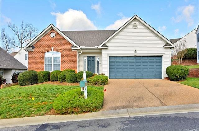 Fantastic mostly one level living at Krim Point in The Grove. 1st floor master suite with lovely master bath that offers double sinks, jetted tub and shower. Additonal 1st floor bedroom with carpet and full bath access. Great open floor plan that boasts a spacious family room with corner gas fireplace, 9ft ceiling with ceiling fan, the plan flows nicely into both the kitchen and the dining room area. Sliding doors provide abundant natural sunlit living spaces and access to the rear patio and easy to maintain small yard. Kitchen has tile flooring, recessed lighting, pantry and eat in nook. Laundry/mud room convenient to garage access and offers shelving/cabinet storage. Upstairs there are 2 additional bedrooms with large closets and ceiling fans, one with laminate wood flooring and a 3rd full bathroom with tub/shower combo. Exterior is low maintenance brick veneer and vinyl siding, aggregate drive and 2 car attached garage. This home is convenienetly located in the heart of Midlothian and the neighborhood offers wonderful amininteis such as the pool, clubhouse and common areas.