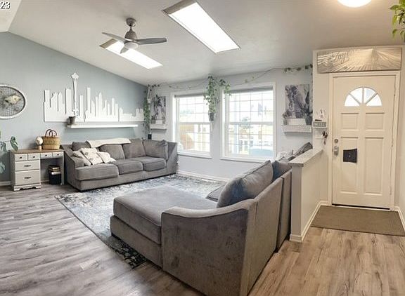 This single level, updated home is a must see! Vaulted ceilings with skylights provide wonderful natural light. Oversized garage has checkerboard floor, gated 55 ft RV parking; 50 year metal roof, windows updated in 2017 along with hvac/ac. There is a wonderful covered back patio for year round use, deck and tool shed. Granite Counters & LVP flooring.