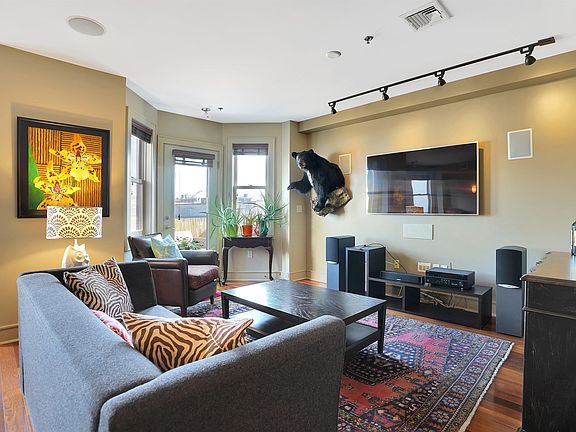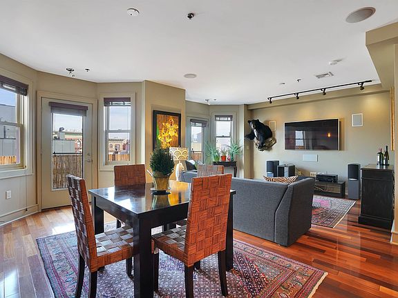 Enjoy spacious living in your 2 Bedroom, 2 Bath Penthouse in a beautifully designed boutique elevator building with just one unit per floor offering terrific privacy. The spacious open layout offers approximately 1300sqft of living space and a large terrace off of the living room with NYC views which is the perfect spot for entertaining or relaxing after a long day. The kitchen includes an open island, stone counters and stainless steel appliances. Exceptional natural light throughout with oversized and bay windows offer eastern and western exposures. Additional features include beautiful hardwood floors, recessed lights, central A/C and in-unit washer dryer. Centrally located in a great Hoboken neighborhood with easy access to parks, boutiques, markets, restaurants, and NYC commuting options. (Available FEB 1st)
