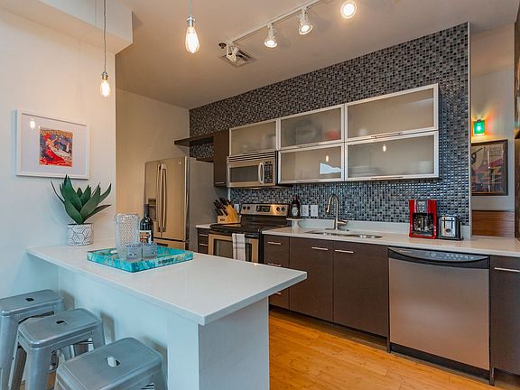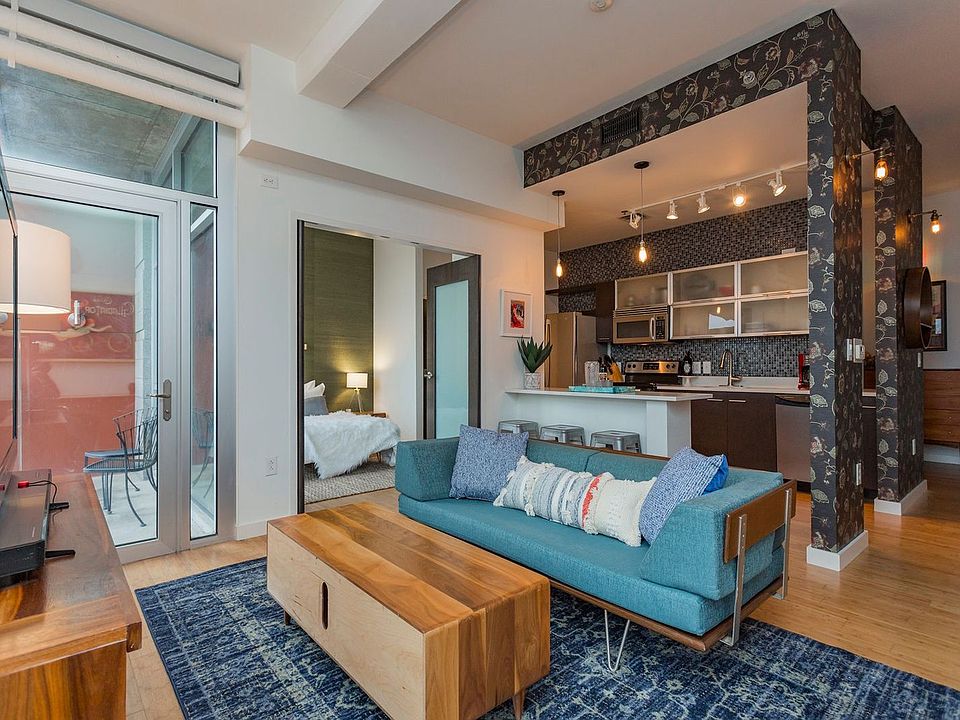 Feel at home in this amazing space just steps from Nissan Stadium and all the great restaurants and shops East Nashville has to offer. This stylish and artistic flat features private parking in a garage, an elevator close to the condo unit, and views of the beautiful courtyard. Enjoy rooftop access and a restaurant located on the first floor, making it ideal for an extended stay in Music City USA. Eclectic and clean, this flat has everything you need while you are here on business or an awesome vacation. The fully stocked kitchen includes a kitchen island with seating for four, and the comfy and stylish living area offers views of the beautiful courtyard. The bedroom features a comfortable queen bed and a walk-in shower, and there is a desk area with seating. Enjoy the convenience of an in-unit washer and dryer, Wi-Fi, and Sling TV. The building offers a 24/7 gym, a restaurant on the main floor, rooftop access overlooking the downtown skyline, and community gas grills with seating. Concierge and package delivery services are also available. Located in a quiet, family-friendly building with all the urban amenities, this apartment is just a few short blocks to The Turnip Truck Grocery Store and many restaurants including Five Points Pizza, Butcher & Bee, Edley's BBQ, and the famous Sky Blue Cafe. A short drive or nice walk will take you to local shops, restaurants, parks, and grocery stores, and it's just one mile to downtown. Photo ID verification is required within 24 hours of booking for a reservation to be considered valid. An email and text will be sent to the guest regarding identity verification upon booking, and the guest has 24 hours to provide the identification required by the payment processor for the reservation to be validated.