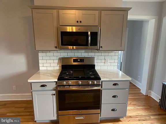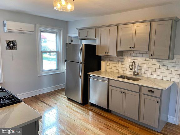 This apartment is in great proximity to the Regional Rail train and is only a few blocks from the center of town. Recently installed cabinets, refinished hardwood floors, recently tiled bathroom with recent fixtures. Unit includes washer, dryer, and dishwasher. Plentiful storage space in the attic. The unit features driveway parking for 2 cars. This is a second floor apartment of a duplex. It has its own private entryway. $50 per pet fee / mo. No large pets. Showings September 20-21 5-7pm only. Owner pays for trash and sewer. Tenant is responsible for water, gas and electric.