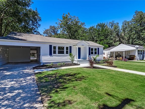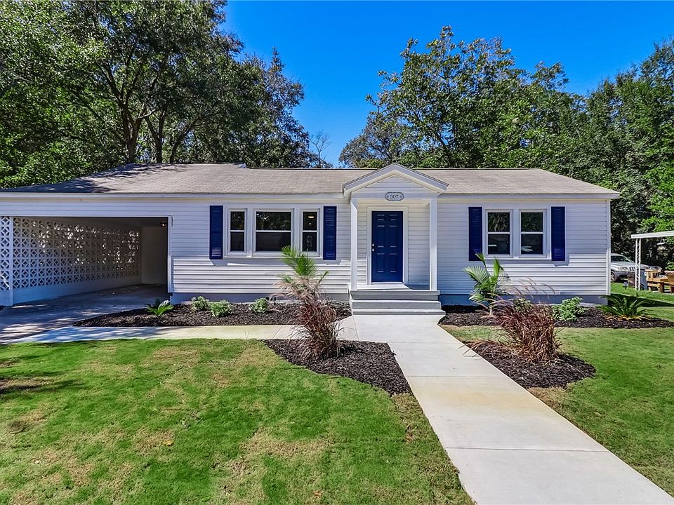 Don't miss out on this jewel! Downtown Golf Cart District St Marys renovated 3 bedroom, 2 bath home with front and rear access of home! Welcoming large family room, dining space and an impressive new kitchen with white cabinets and butcher block countertops. Stainless Steel Appliances that convey. Large pantry. The Master Suite is well situated with a walk in closet, tiled shower, double vanity and private water closet. 2 additional bedrooms and a full bath are in a wing of it's own. New luxury vinyl plank and tile throughout. Mud room area with indoor laundry; Washer and Dryer convey. Large fenced back yard with a shed for additional storage. Enjoy the fire pit on these cool fall evenings. The back yard is large enough for a pool, large workshop, boat and/ or RV parking! Rear access is via the City of St Marys easement. Covered, attached, parking is front and rear as well as additional storage/ workshop in between. Look at the beautiful brick artwork on the wall of the carport! The yard is beautifully landscaped with new bermuda sod, plants and fruit bearing trees and new walkway to the covered front porch. Lots of storage. Note: NEW windows, doors, bathrooms, kitchen, flooring, porch and side walk entrance, gravel rear entrance. The list goes on! --A MUST SEE SPECIAL PROPERTY.