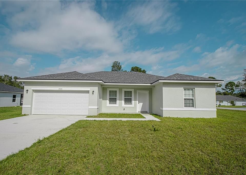 Under Construction. Featuring 4 bedrooms and 2 bathrooms, this beautiful brand-new home offers an interconnected floor plan that integrates living and dining room with a well-equipped kitchen, complete with a central island, a practical breakfast bar, solid wood cabinetry, and sleek granite countertops that ties the family room. Whether entertaining guests or enjoying a quiet family dinner, this home is designed to embrace your lifestyle. Discover the perfect blend of urban conveniences and natural beauty in Ocala! One or more photos were virtually staged.