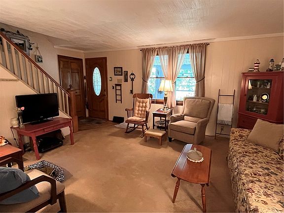 Cozy well maintained home with privacy as house is at the end of "dead end" street. Front yard has patio area with brick cookout/fireplace. 1st floor laundry. Den or office space on 1st floor. Newer vinyl windows and roof (2009). Hot water tank (electric) new 2022. 3rd BRm heated by electric heater. Owner leaving de-humidifier and 2nd refrig.