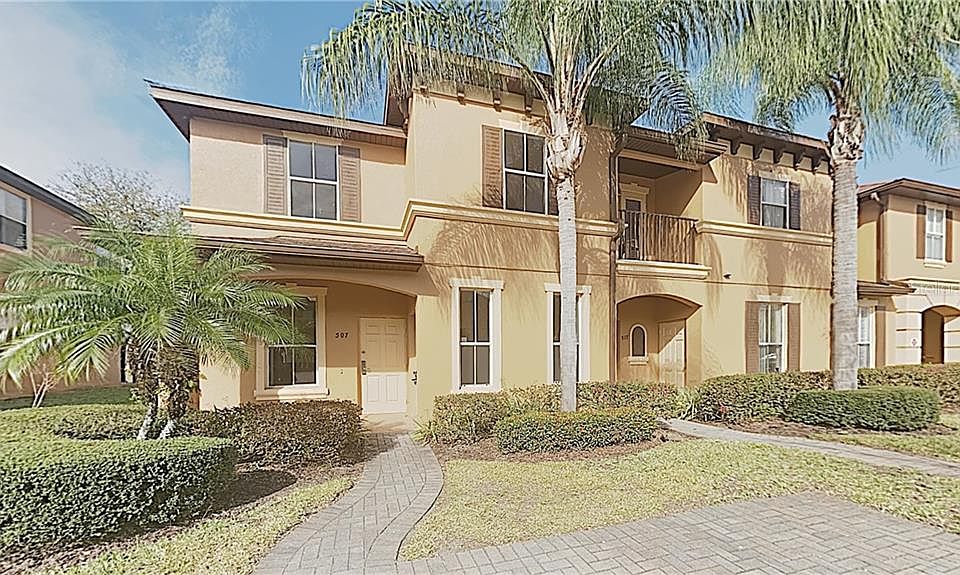 Enchanting 2-story end-unit townhome in gated community Regal Palms! Townhome features incredible views of the lake. Spacious master suite downstairs and secondary master up. New carpet throughout. Brand-new granite countertops in the bathrooms and kitchen! Beautiful community pool and lakes, volleyball, spa, fitness center, and so much more! Quick access to Disney parks and more! Come tour today!