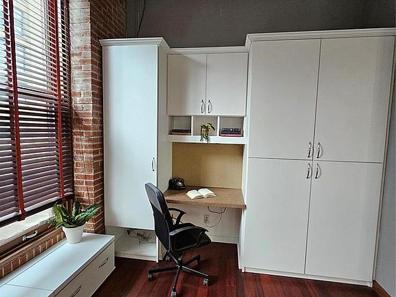Welcome to the Knickerbocker Lofts nestled in the Heart of Downtown St. Louis! This 1 bd/1 bath corner loft overlooking Washington Avenue offers a captivating blend of historic allure and contemporary style, boasting meticulously restored full brick walls*timbered ceilings-columns*expansive floor-to-ceiling warehouse windows*exposed mechanicals that evoke the industrial heritage of the area. You'll appreciate the attention to detail from the carefully curated finishes to the thoughtfully designed layout. The Open Floor Plan is perfect for comfortable living and entertaining - the custom built-in desk & shelving will make working from home enjoyable. The building's tiered rooftop deck with grills and lounge seating provides the ideal setting to unwind while soaking in the city skyline or hosting gatherings with friends and family. It doesn't matter if you are a sports enthusiast or a culture connoisseur, you'll find yourself perfectly situated only blocks away from all the excitement. Location:
