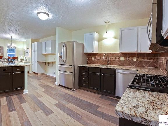 This beautifully updated ranch home is truly a must see. Huge chef's kitchen w gas range, granite countertops, stainless appliances, custom backsplash and new flooring. All appliances convey with home - including nearly new washer and dryer. New flooring throughout main living areas, updated paint and designer lighting. Large master w ensuite full bath w granite topped vanity. Two more bedrooms on main besides master and another updated full bath. Enormous oversized fenced yard w large deck for entertaining and the attached two car garage is a huge bonus. Finished lower level features media area, bar, bathroom and non-conforming room great for office or work-out area. Walk to everything in Ashland and enjoy the small town lifestyle just minutes to Outlet Mall, lakes and Omaha.