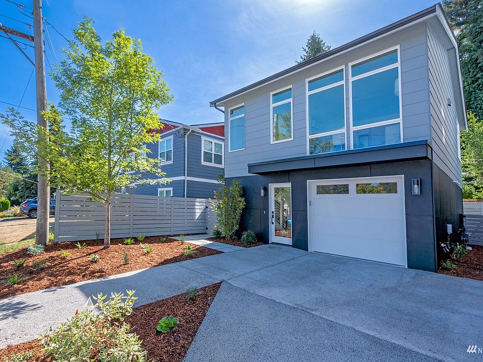 Brand new energy-efficient stand alone construction with garage in the heart of vibrant Greenwood - this just right home is the sanctuary you've been looking for. Located on a quiet street. Around the corner is one of Seattle's treasured lush neighborhood parks. Light filled open concept living - dining and kitchen. Modern quality finishes throughout. Wonderful home office area opens up to refreshing fenced outdoor space. Driveway and single car garage with EV charging makes this the perfect in-city home! Just blocks to convenient restaurants, shopping, groceries, bakery, library and much more.