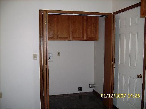 This clean, ranch style home has a painted interior and a single car attached garage. The living and dining room are part of an open floor plan. It is located near a children's playground and a tennis court.