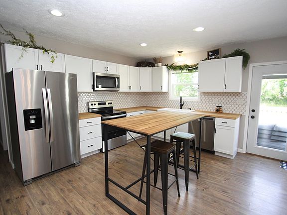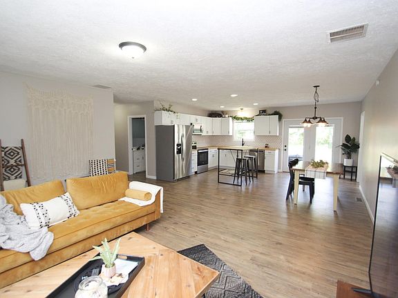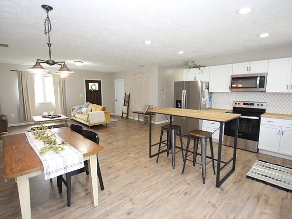 In town living with country feel! The open concept living area is the hub of this ranch style home. The kitchen features stainless steel appliances and a dining area. Just off of the dining area you will find your laundry room with pantry. The home also features a split bedroom floor plan. The main bedroom has its own en suite with a huge walk in closet. On the other side of the home you will find 4 more bedrooms with walk in closets, one of which also having its own en suite bathroom. There is a 3rd full bathroom in the main hall. Outside you will find an oversized 2 car detached garage and a spacious backyard with a new firepit area and landscaping.