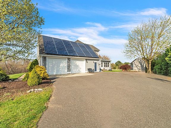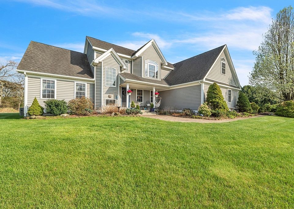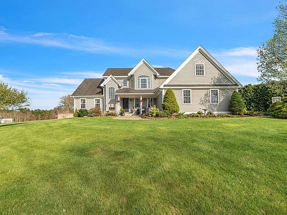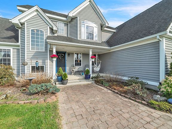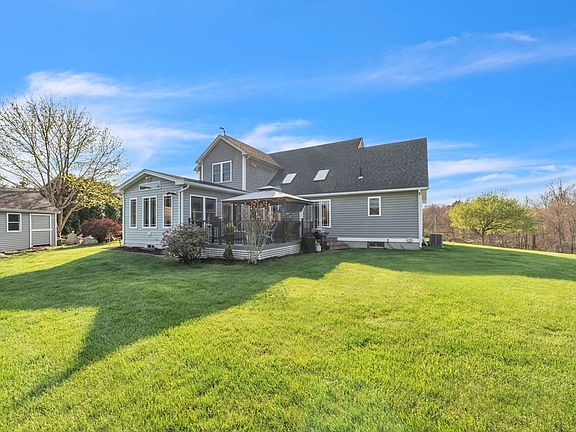Expect to be impressed! This stunning 3 bedrm 2 & 1/2 bath contemporary is sitting on a beautifully landscaped acre of land. This home offers beautiful crown molding, a large kitchen, cherry cabinets & granite counters, a breakfast bar & dining area, a light & bright newer familyrm addition with sliders to a 15x20 deck overlooking the private backyard. Off the kitchen is the sunken livingrm featuring cathedral ceilings, skylights letting in natural light, newer hardwd flrs & gas fireplace to cozy up to during those chilly winter evenings. There’s a media room/formal diningrm. You’ll love the 1st flr primary bedrm suite w/gorgeous hardwd flrs large windows, spacious closets & vaulted ceilings. 1/2 BA & 1st flr laundry complete the 1st flr. The attached full bath has a double vanity w/granite counters, a whirlpool tub w/a lovely view overlooking the yard. Upstairs there’s 2 bedrms, a large bonus rm & full bath. 2 zone Central air to keep cool & solar panels that $ave $