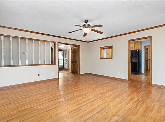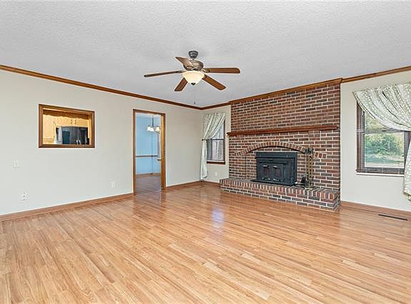 Beautifully maintained all Brick true ranch in Higginsville MO. This home features 3 bedrooms, 2 full bathrooms, and 2 half bathrooms. It has 3 living spaces, 2 on the main level and 1 in the finished basement, both an eat-in kitchen and a formal dining room, a large master suite, open concept, 2 fireplaces, main floor laundry, newer roof, a basement workshop, and lots of storage. This home feels like you're living in the country, only you're on the outskirts of town. It has farm ground to both the front and the back, with just two neighbors. It checks all the boxes, a must see. LOVE WHERE YOU LIVE and call today for a private showing.