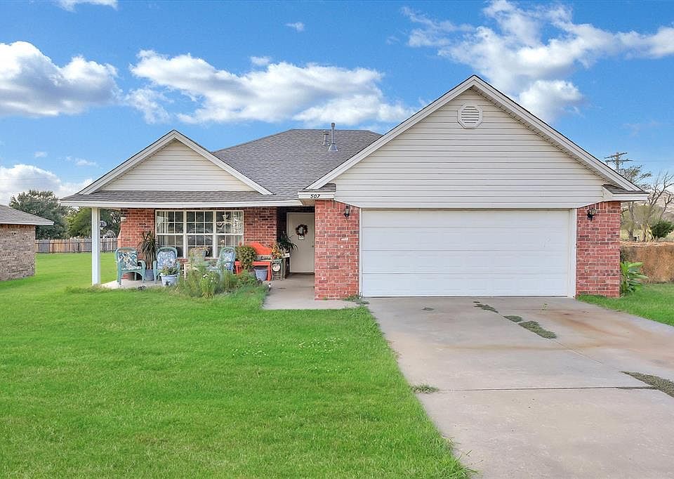 Welcome to charming Granite, Oklahoma. This rural community is nestled at the foot of the Granite Mountains and is just minutes from larger towns such as Altus, Elk City and Lawton. This nice brick home is located on a large corner lot and has 3 bedrooms and 2 baths. Open concept floor plan. The kitchen is spacious and has a lot of cabinets, a working island and a gas stove. The Primary Bedroom is nice size and its bathroom has a large tub and separate shower. The backyard is completely fenced and the patio provides a wonderful view of the mountains. Call for a private showing today.