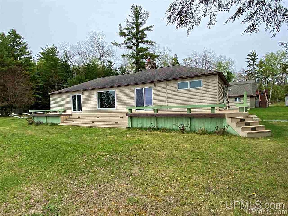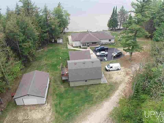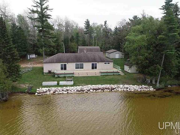 Upper Peninsula Lakefront home with many exciting features you won't want to miss! The private 313’ - 2+ acre parcel is a rare find on an 840 acre Inland Lake of the quality of Gulliver Lake. The gorgeous summer sunsets and the sound of wind through the tall pines will help you escape from it all. The frontage is hard bottom sugar sand and you can tie your boat to the 100' aluminum dock that is included. There's lots of room to store your toys in any of the 3 garages with over 2100 sqft of combined floor space, which does include a man cave/bar area. The driveway was well thought out and allows you to enter on Township Park Road and exit on Gulliver Lake Road for convenience when pulling the camper or boat. The 3 br 2 bath home has great views of the lake from the picture windows and patio doors leading out to a spacious deck. The well maintained home was stripped down and rebuilt 1990 and is 1872 sqft. and features a spacious kitchen with lots of counter and cabinet storage space. The living rooms custom wood work, cozy gas fireplace and newer hot water boiler will keep you warm on those snowy UP winter nights and provide the up north feel you long for. All roofing is less than 6 years old, wiring and plumbing have many updates and all appliances are included. The showing and offer period will remain open at sellers discretion through Memorial Day weekend. Seller to review all offers June 1st.