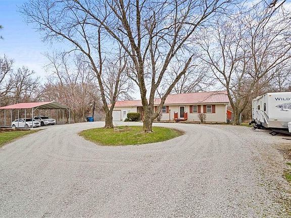 Looking for country living, close to town? Look no further! This property has IT ALL - sitting on 5 acres just outside Warrensburg off of 13 hwy, fully fenced and ready for your family and all your animals (horse-ready!). Pastures and home surrounded by green space, including wooded area with creek and fire pit for summer nights. The whole home is set up with a wood burning boiler heater system. The outside system was sold and it has a furnace now but that could be converted back. Interior has been updated and remodeled with skill and taste, from new floors to hand crafted countertops with contemporary backsplash, and even a renovated laundry room. Nearly 2000 spacious square feet of comfort awaits! Huge mud room with built-ins for coats and shoes enters into bright, open concept living, kitchen and dining and spacious bedrooms. Large garage can be converted back to two-car. Vinyl siding and metal roof promise minimal maintenance. Fresh laid gravel across the whole driveway and the 20x25 exterior truck port new 2023. Fruit trees include mature pear, peach and apple. The huge cottonwood tree is still on the property. Drone picture has corner boundary marked.
