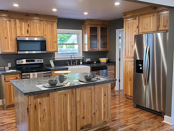 Amazing transformation on this sweet charmer. Beautifully redone and has the WOW factor. Featuring a 3 bedroom, 2 bath home with 1804 sf. Living room with built-ins, decorative fireplace, and large picture window. Gorgeous kitchen with KA Design cabinets, granite counters, farmhouse sink, island, hardwood floors, dining room and stainless steel appliances. Sunny and bright family room with large window and wood stove. You will love the Master suite with inviting bath, walk-in closet and slider to the new deck. Detached garage, new sod in back yard, landscaping plants and nestled on .19 of an acre. District 7 schools. Don't miss seeing this one.