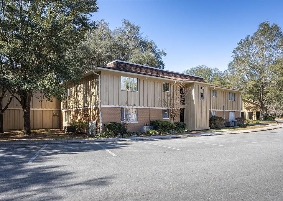 This spacious and affordable ground level condo is conveniently located off of Newberry Road/University Ave. Only minutes to UF, Shands, North Florida Hospital, and the VA hospital. Unit has tile floors, updated lighting and paint and also features a microwave, newer water heater and ceiling fans all installed within the last few years. Stacked washer/dryer is included. Unit is located in the back of the community, faces the treed courtyard and is next to the pool and clubhouse. Pets are welcomed! The community offers the following amenities: pool, tennis court, basketball court, clubhouse and fitness center. Association fees include water, sewer and garbage. Perfect location for all your Gainesville needs!