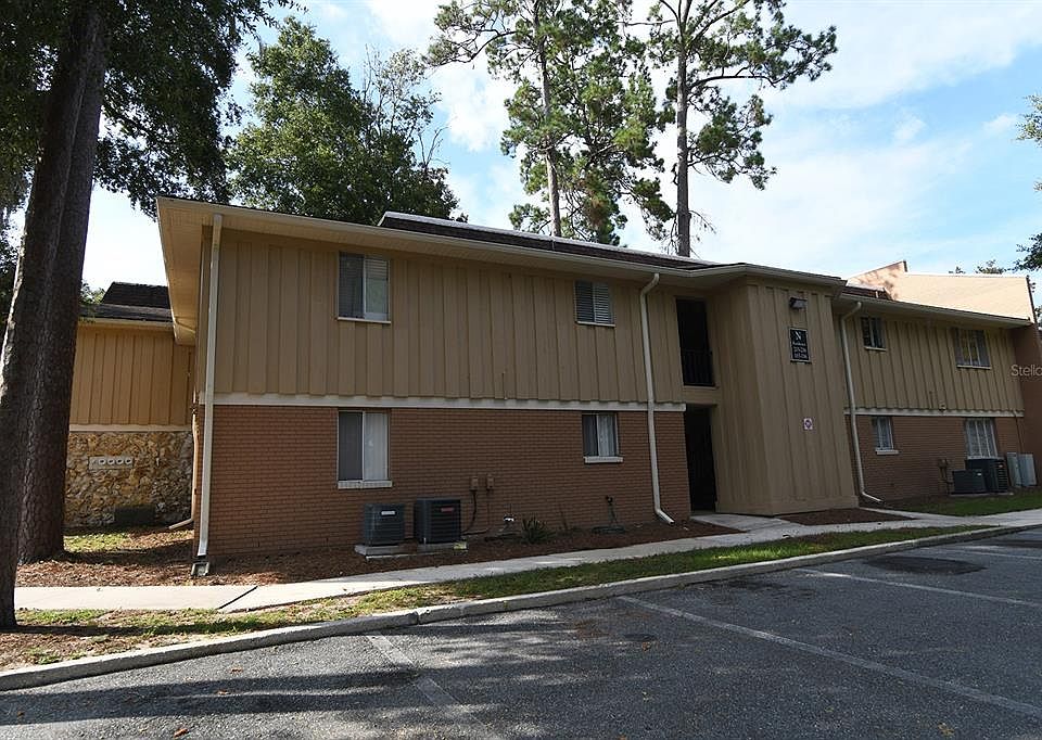 Prime Location for this top floor unit condo. Renovated to include luxury vinyl flooring in the living and bedrooms areas, along with freshly painted walls and trim throughout. This charming 2 Bedroom, 2 Bathroom condo offers convenience living. You walk into an open plan living, dining, kitchen area, while the split bedroom situation allows privacy with a roommate, guest or have a separate office/work from home space. Master bedroom includes an en suite bath and a large double closet. The quiet community provides amenities like a clubhouse you can rent out, a beautifully maintained swimming pool with a grilling area, tennis courts and a dog park space. This condo complex in on the public bus line and just over 2 miles from Ben Hill Griffin football stadium and the University. This location is idea for students and professionals alike. Water and Sewer are included in HOA fee.