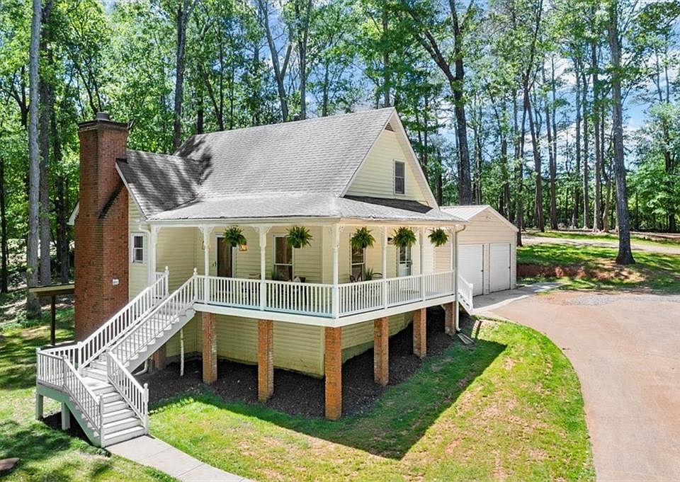 Soak up the beautiful wooded scenery as you drive through the gated private entrance and up the long meandering driveway to the peak of the property. Here is where you will discover the beautiful farm-style home with wrap-around porch and huge basement. The basement has a full bedroom, full bathroom, living space, kitchen, and separate entrance, doubling as an optional income-producing in-law suite. The home sits perched atop a plateau, creating high views visibility, complimented by a level back yard where you can create your own oasis. The home has been renovated with all new fixtures and fans, a freshly painted deck, newer gutters, new driveway, new flooring in basement, and fenced in yard (with exception of .25 acre on opposite side of creek). The kitchen was also upgraded to include white cabinets, granite countertops and stainless steel appliances. Bonus features include: - Two laundry rooms - Detached two-car garage with 26' x 31' oversized roll-up doors and running electricity - Standalone covered RV parking with electricity - Additional gravel parking pad that fits up to 4 vehicles. Zoned AG.