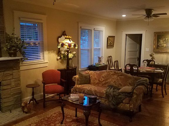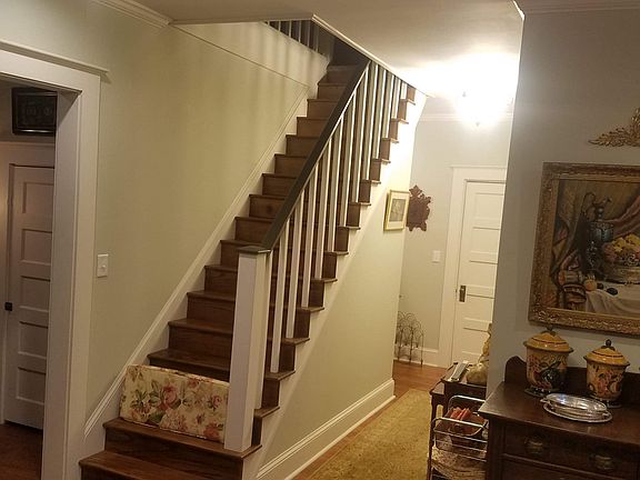Older home with large rooms, brick exterior, metal roof, upstairs runs entire length of home, central heat, carport, lots of storage areas, basement for safe shelter or storage, original hard wood floors.