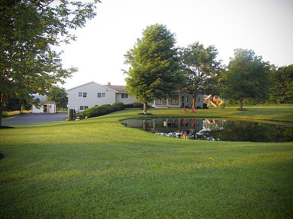 This Beautiful Custom Ranch sits atop 4.58 acres where each room you enter looks out into it's own breathtaking view of the valley and mountains that surrounds on all sides!! Your picturesque country side road leads you atop your driveway overlooking your very own piece of heaven on earth! Out front you sit sipping your coffee peacefully listening to nature on your porch looking out at landscaped grounds with majestic trees that surround your own spring fed stocked pond !! Outback, your eyes gaze upon the Adirondak Mountains in the distance as you enter into each season filled with all types of wild life to see in your own private Wonderland of fun for everyone of all ages. Retreating any night to a relaxing evening to just sit around the roaring fire by the bigger than life hand made stone fire pit gazing at the stars! You access your 3-tier deck through your french doors out your dinning area or your adjacent Great Room to have Summertime family/friends over for dinner in the cool shade or the Spring/Fall/Winter get-togethers entertaining any size gathering on the sunshine filled grounds. Whether your smile looks upon the kids playing in the sandbox or in your 27ft. above ground pool they all have breathtaking views of the valley! What a joy watching kids of all ages play upon the colorful oversized Rainbow Playset, horseshoe pit, volley ball/soccer field and of course basketball court. This is truely the ultimate home to entertain your family and friends and making memories for a lifetime! Newer construction on both ends of the original house totally re-done with an open floor plan and amazing kitchen/dinning room opening into Adirondak Style Great Room with heart-pine wood floors and ceiling! Large wood stove heats entire house and gives you dreamlike winter nights after ice-skating on your pond with windows all around to enjoy each seasons beauty!! The brightly color filled guest bathroom with it's unique floral design pedestal sink and matching toilet leads to all the spacious bedrooms with views and ceiling fans. The Master Suite with 2-person jacuzzi tub large seated shower and vanity and walk-in closet. Downstairs you have half basement finshed to have a spacious room for entertainment w/attached mud room type entrance. Other side of the basement has plenty of storage, work area, cedar closet, large sink and leads to the large 2-stall meticulously kept attached garage to keep you out of the elements. Convenient tiled half bath in the garage to accomodate family and friends when outside enjoying the fun or working the garden. This property owner has many extra's to offer to the right buyer that will make purchasing this getaway home a joy to own!! Imagine coming home to your own family time and resort each evening and being re-charged smiling eachday to work!!! Easy travel commute! Only 5-min. from Exits 26-27 NYS Thruway and only 20-min. from Albany's Tech Valley, 10-min. to I-88 and I-90/Northway and 30-min. from Saratoga Springs & Lake George and 20-min. to The Great Sacandaga Lake/90-min. to Lake Placid! Quick local shopping commute to every store imagineable or 20-min. from 2 of the largest Malls in the NorthEast!