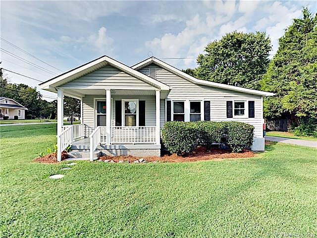 Charming 3 bedroom home in Kannapolis neighborhood in close proximity to restaurants and shopping on corner lot. Front porch perfect spot to start your day and enjoy your morning coffee. Generous carpeted living room off entry with window seat and bay window. Neutral 2 tone paint throughout. Dining room/family room off kitchen features beautiful wood laminate floors. Compact kitchen showcases new counter tops and new stainless steel range. Separate utility room. Grass yard with separate carport and storage shed. This home has tons of potential!! A must see!!