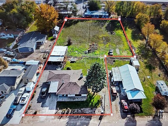 Larger city lot (.83 acre) with city services in the heart of Wilder. Older house with lots of potential. Shop has power and cement floor. Residence has a new roof and furnace 1 year ago, water heater 3 years old and new pressure tank and well pump put in 2 years ago. This property has a ton of space and could be a great residence or an investment property. City of Wilder is allowing splits on residential lots and duplexs on lots that have 7000sqft or more. With 1/2 an acre behind the house it could be possible to build 3 duplexs. The house has a built in wood fireplace and wood stove. House and property are sold as-is. Buyers and buyers agents do your due dilegence.