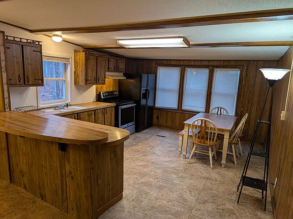 Nice three-bedroom ranch house on a private road surrounded by woods. The rooms are freshly painted with new carpeting in the living room and first bedroom. There is a large porch and several parking spaces available. The landlord pays for sewer and water while you pay electric, trash and heating. There is a one-year lease with a month and a half security deposit and first month's rent needed to move in. Call. Kevin, to arrange showings. It is best to respond by email through Zillow with a completed application. The house is available for July 1st.