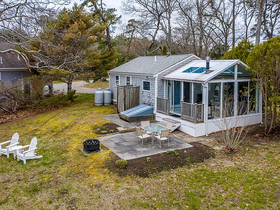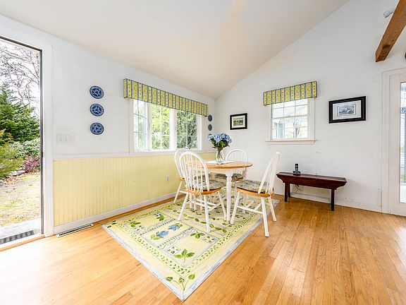 Idyllic Waterfront Home. Efficiently wonderful year-round condo, Living/Dining Room with Hardwood floors, Cathedral ceiling, Bay Window. 2 Bedrooms and Full Bathroom. Kitchen has Gas Range with Hood, Dishwasher, Fridge. Sunroom with 3 walls of glass, Vermont Castings Radiance gas stove, slider to Patio overlooking the Great Marsh. Full basement with Laundry, outside access only. Double Propane Tanks for Gas kitchen range, heat, & gas stove. Central A/C. Roof is 7 years old. Assoc. Fee $1400/year. Rentals discouraged, 6 month minimum. Stroll to the elevated seating area to enjoy stunning sunsets, or launch your kayak on Scorton Creek. Wonderful getaway or year-round home.