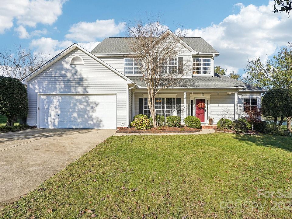 Beautiful cul-de-sac home in very desirable Gable Oaks community. Location is superb to both Concord (Afton area) and Charlotte via I85 minutes from home. Rocking chair front porch and beautiful huge paver patio in the back with permanent fire pit. One of the largest lots in the community that has complete wrought iron fencing and sideyard leads to the community tennis/volly ball court, pool and play ground area! Perfect location. Master on the main! Granite in kitchen and all baths. Large laundy room. Loft for the kids or man cave for dad! Large garage with two storage areas. Beautiful permanent Christmas lights are installed on home! (See attached picture. Lights on house only) And Garage is EV charger ready! There are also Google Nest smart thermostats on both levels. Home has an installed security system but current owners have never used.