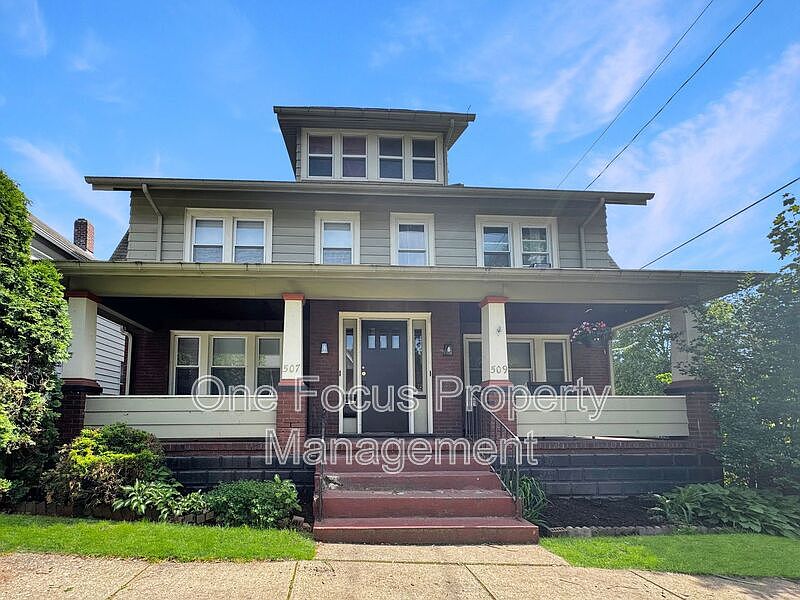 This lovely duplex is centrally located to the UPMC Williamsport campus and the downtown shopping district of Williamsport. Outside, there is a private front porch for your use only that can accommodate patio furniture. There is also a fenced shared yard in the rear. Inside the main door, you are greeted by a vestibule where you can enter your home's main door. You are greeted by a large open space that has space for your living room and a dedicated dining room. There is also a small half bathroom located under the stairs. The kitchen faces the rear of the home and has a vintage vibe with original porcelain tiles, but also boasts an upgraded modern L-shaped bank of cabinets and countertops. Additionally, the kitchen hosts a built-in breakfast nook and has a small pantry closet. Through the kitchen into your rear mudroom, you will find your washer and electric dryer connections, and access to the shared backyard. Upstairs, you have three bedrooms that are all different sizes with a closet for storage in each. There is also a walk-in closet space at the end of the hall, and a linen closet that can be used for your full bathroom located at the top of the steps. The bedroom facing the rear of the home also has a private balcony that overlooks the rear of the home.