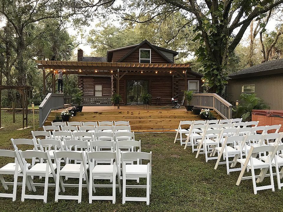 The log cabin on the property has an open kitchen with views of the back deck that overlooks the dock and pond. Freshly painted inside and out. 2 bathrooms, one upstairs and one downstairs. Newer appliances. Two a/c units. Reroofed in 2015.