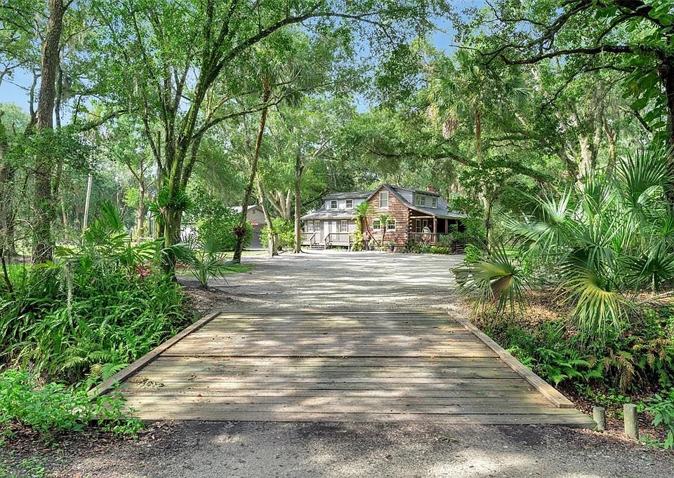 This absolutely stunning log cabin home is situated on 5 acres and surrounded by lush green landscaping and has been well manicured and maintained, this property is zoned to have 3 houses per acre with 2 main gated entrances right on Rye Rd which provides many options for further land use. Previously used as a wedding reception rental business and fabulous short term vacation rental (Air Bnb), it would make a prime investment for many years to come! Off the back you will find the brilliant covered deck with multiple spots to grill out with family, drink your coffee in the morning and take in the outdoor wonderland and all of the wildlife that is right outside your door. The property has a utility shed, chicken coop, goat corral, an incredible greenhouse with integrated irrigation and a two car garage that could be enclosed as it is under ventilation (window unit). A covered front porch takes you to the front door where you will find an oversized family room accented with high ceilings and hardwood flooring throughout, the bonus sitting area has extra large windows bringing in pristine natural lighting and would make a perfect converted 3rd bedroom, reading nook or in-home office space. Down the hall, find the formal dining room with built-ins galore and a beautifully updated downstairs bathroom with solid surface countertops, vinyl flooring, recessed lighting and a grand custom tile stand alone shower. To the right there is the completely remodeled eat-in dream kitchen featuring shaker style cabinets, farmhouse sink, stone surface and butcher block countertops, stylish backsplash and fixtures, stainless steel appliances, a center island with built-in wine cooler, vinyl flooring and a massive breakfast bar with ample space for entertaining while you cook a nice meal with friends. There is a convenient indoor laundry area right off the kitchen which has a stackable washer and dryer. Upstairs you will find two spacious bedrooms and one shared bathroom with big windows and so much character! Centrally located where you are close to the city but still can enjoy the rural lifestyle, only 45 minutes from local beaches. You do not want to miss out on this once in a lifetime opportunity!