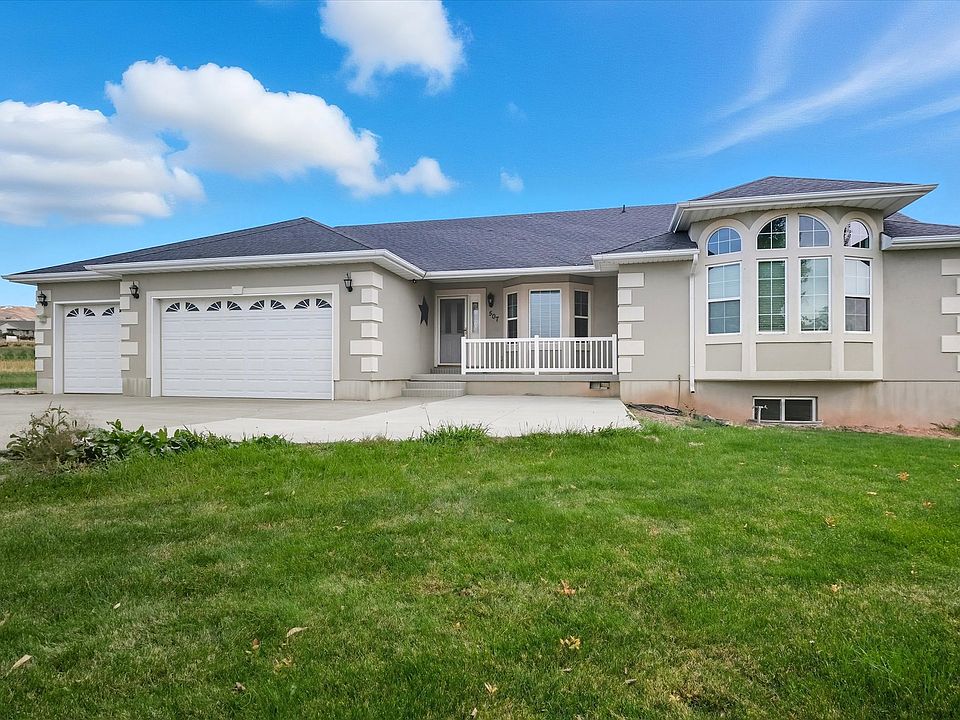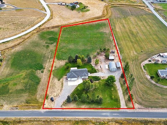 Many possibilities present themselves as you pull up to this one owner, west facing rambler in a desirable location. Will it be the 3.9 acres setup with pressurized irrigation, the 1,000 sqft quonset hut building, the 3 car garage, the private backyard, or the generous size of the home that will bring you a smile... maybe all the above? This home has a spacious layout that was just professionally cleaned. The bright open kitchen includes a large island and corner sink to view the rolling hills that are a backdrop to the backyard. This leads to the mud room and garage or over to the dining area and living space upgraded with a gas fireplace to enjoy cozy winter nights. Generous primary suite roomy enough for a reading nook retreat. Lower level has a finished space setup as a recreation room that could be a dedicated lounge area with entertaining features such as a pool table, or a media room to emphasize entertainment and social gathering. This all leads to unfinished space open to your vision such as additional bedrooms, flex space for office and/or exercise room, etc. The walkout leads to the quonset hut updated with power and the many mature fruit trees. ***Carpets were original to home and worn. Sellers removed so Buyer could select a carpet of their choice. Not due to pets, NO pet order. Sellers are offering a carpet allowance to finish off the upstairs space in your taste.