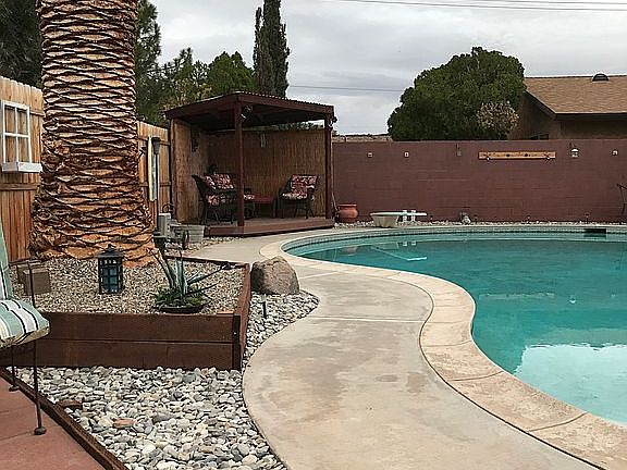 Make certain to be the first to view & purchase this immaculate 3 bedroom located on a corner lot in a quiet shaded & ideal neighborhood.Featuring a lovely floorplan, RV parking & AMAZING backyard! From the moment you enter, impeccably clean! You will totally appreciate the many upgrades & be in awe of the amenities, such as all new windows, generous living room with cozy fireplace, large kitchen/dining area highlighting quartz countertops, beautiful cabinetry w/undermount LED lighting, center island bar & all new black stainless Samsung appliances! You will also notice beautiful ceiling fans throughout to keep cool along with a brand new "Mr Kool" mini split. Spacious master bedroom with lots of closet space and of course a perfect master bathroom with gorgeous barndoor entry presenting a divine tiled step-in shower large enough for two. You will completely fall in love with the spectacular backyard, an entertainers delight featuring a covered patio, outdoor living complete with kitchen & grill. All outdoor furniture to stay with new owners..A GORGEOUS & irresistible inground swimming pool perfect just for you/family & friends to enjoy during the hot summer days! Make an appt ASAP
