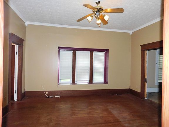 Classic 2 Story home on corner lot. Exterior improved with permanent siding and vinyl windows. Interior offers some updating with original charm and character. Main floor bedroom. Living room with bay window. Office/Den. Updated kitchen with island/bar. Large dining room. Main floor bath with tub/shower. Open banister to upstairs. 2 bedrooms, bonus room at landing. Huge bath with double vanities, shower and jetted tub. Zoned heat and air. Front and back covered porches. Oversized 2 car garage. Fenced yard.