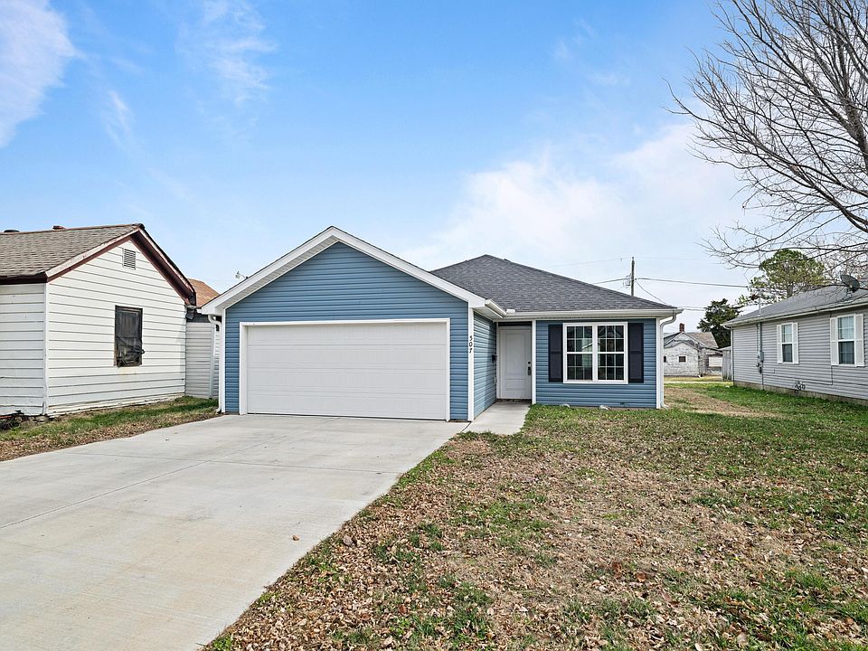 Move-in ready 3 bed/2 bath Webb City home built in 2021! This wonderful property offers everything you need with vinyl flooring through the main areas, carpeted bedrooms, and granite counters! A covered entry invites you into the front living room with an open concept floor plan to the kitchen. The kitchen comes equipped with matching stainless appliances, custom cabinets, and a kitchen island with barstool seating. The primary bedroom has an attached bathroom with shower/tub combo and walk-in closet. 2 more bedrooms share a full hall bathroom. Quick access to parks and I-49.