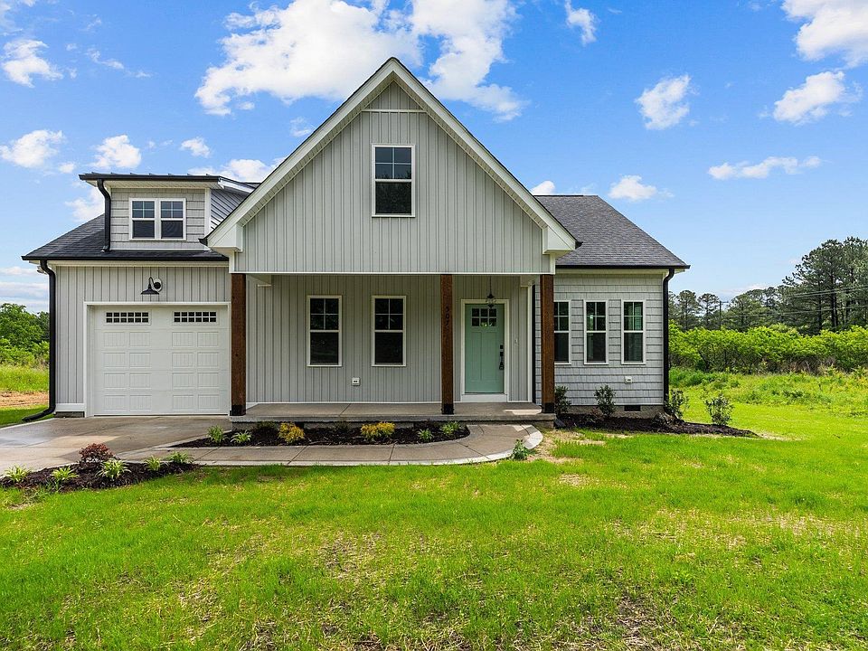 New Construction loaded w/ extra features! Open concept kitchen/dining/living. 9ft ceilings, granite tops, shiplap accent gas log fireplace, upgraded fixtures, & oversized windows for tons of natural light. Spacious laundry room off garage with storage, utility sink, & custom barn door! Master offers large WIC, dual sinks, soaking tub, & shower! Landscaped lot & fridge provided, all the extras are already done for you! Great location w/ easy commutes to Raleigh. Come fall in love w/ this country charmer!