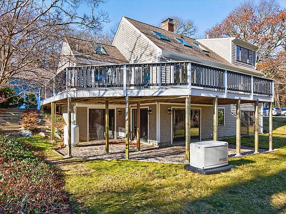 Discover pond-front living on nearly an acre. Completely renovated in 2024, this home blends high-end finishes, perfect as a year-round residence or your Orleans summer escape.Step inside to an inviting open-concept interior featuring solid wood beams, new hardwood floors, Andersen 400 series windows, and wood-burning fireplace. The designer kitchen impresses with all-new KitchenAid stainless steel appliances and Cambria quartz countertops. Updated baths showcase the same premium Cambria surfaces, and the first-floor bath includes a washer/dryer for added convenience.No detail was overlooked: Velux skylights with solar-powered shades, mini-splits for cooling, a new boiler with tankless hot water, Azek trim, a whole-house generator, and a central vac system enhance comfort, efficiency and worry free living.A two-car garage offers abundant storage, while the unfinished full walkout basement--1,000+ square feet with sliding glass doors--provides endless possibilities for a gym, studio, or additional living/entertainment space. Outdoors, enjoy the koi pond and a freshly stained mahogany deck overlooking the serene backyard with views down to Lily Pond. Seller welcomes offers with requests for buyer concessions.