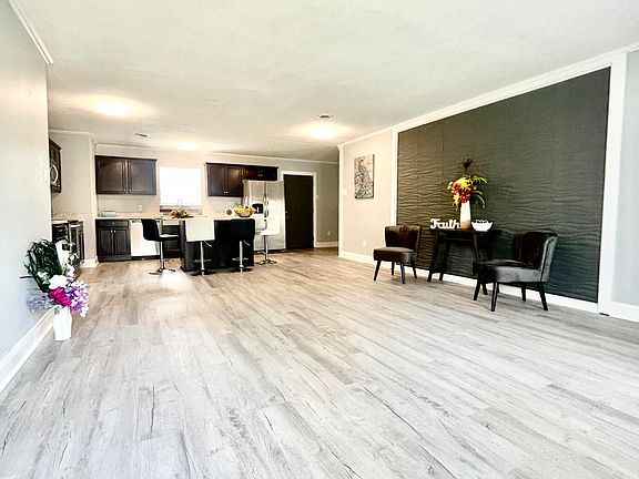 Beautifully refurbished 4 bedroom 2 full bath home at an incrediable price. You will walk into the spacious open living room / kitchen and dining area. You can't help but notice the custom accent wall in the living room. The kitchen island will be a focus and gathering area for your family with a beautiful quarzt countertop. The farmhouse style, deep kitchen sink is another eye catcher. Then walk down the left side of the house and you will find 3 bedrooms and 2 full baths. The right side of the home has a 4 th bedroom with a custom built walk in closet with a stylish barn door . This home also has a nice large laundry room, with built in shelving.