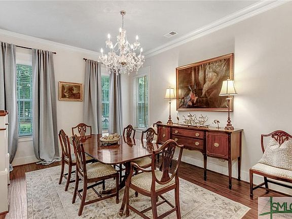 Gorgeous, one-of-a-kind, luxury home in Hinesville. Features include an open floorplan, formal dining room, high-end moldings, 10-foot ceilings, & a gourmet kitchen w/ marble countertops, high-end stainless steel appliances, custom cabinets, a large island, & a large pantry w/ floor to ceiling shelving. Owners suite, located on the main floor, features his & her walk-in closets & a master bath w/ double vanity, clawfoot tub, & a large walk-in shower.Adjacent bedroom could be used as a nursery or private office. Upstairs there are 3 bedrooms, 2 share a jack & jill bath.Mother-in-law suite above garage, w/ a separate entrance, features 1 bed, 1 bath, spacious kitchen & living space, & a deck w/ sweeping views of the yard. The Mother-in-law suite also has access to upstairs but can easily be closed off/separating the space. Huge 4 car garage w/ half bath. Fully fenced backyard w/ a covered back porch. Situated on a very private wooded lot where the home is hidden from the street.
