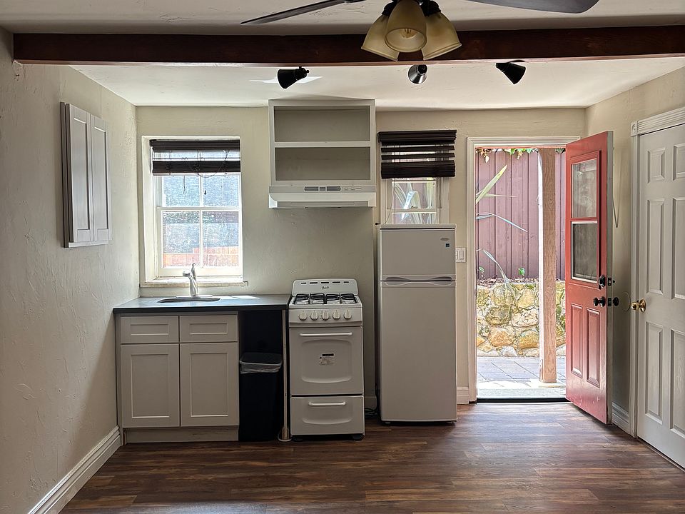 Very cute pet friendly studio available April 1. This studio is attached to a family home in an amazing neighborhood near downtown, shopping, freeway, just about everything you could want! It has its own private entrance with fully fenced in yard, lots of space with 2 large walk in closets, cute kitchen, full bath and more. Freshly painted inside and out! All utilities and wi-fi included. Shared laundry available. Will not fit more then two people, please do not ask. Dog and cat friendly. All water, trash, wi-fi, utils included. Pets considered. No smoking. Open to month to month or year lease.