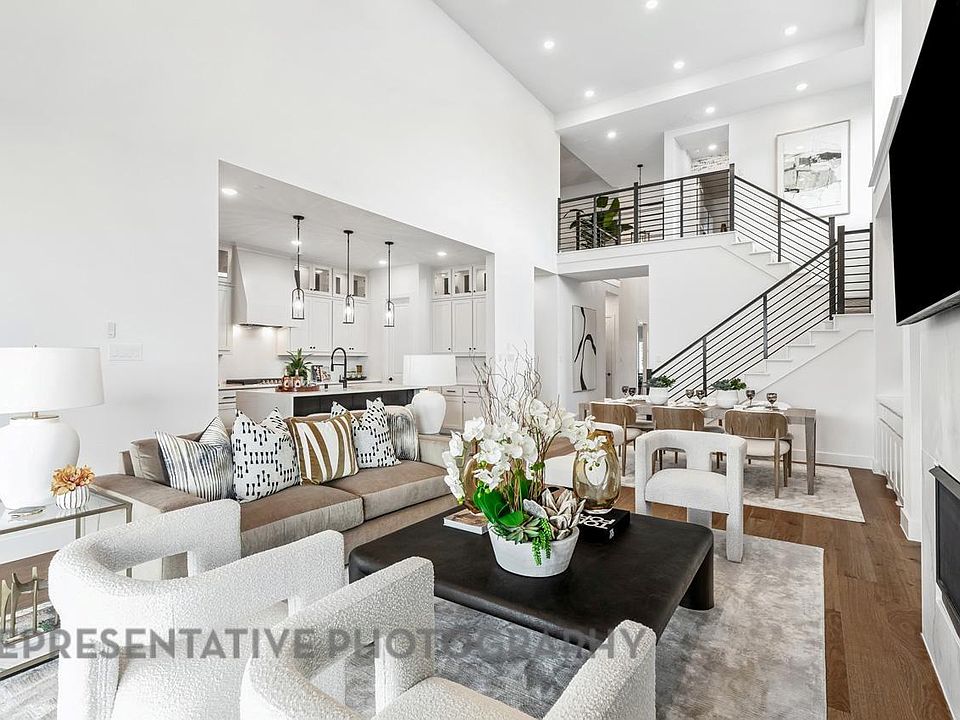 Welcome to the Bellini plan. This 2 story home offers provides plenty of space for your living needs. The living area, dining and kitchen are all open with beautiful wood look flooring. The kitchen has a large island with bar stool seating space and built in appliances. The primary suite has dual sinks, large shower, and a large walk-in closet. A secondary bedroom is downstairs. Upstairs are three additional bedrooms, a full bath, and large loft space. SMART HOME package includes a whole home Wi-Fi router, deadbolt lock with touchscreen keypad, video doorbell and Pro smart thermostat. Other features include spacious yard with covered outdoor living, 8-foot doors throughout the first floor, tankless water heater system, full sod yard & sprinkler system also included. Proximity to top rated schools, recreation center, wave pool, dining, shopping & golf course!