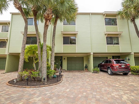 *** Nice Price Improvement*** Welcome to Paradise! This beautiful townhome has so much to offer. The large kitchen with stainless steel appliances, warm cabinetry, gorgeous backsplash, and huge breakfast bar begs for entertaining a crowd. The living area is open and airy with sliders that lead to an outdoor balcony. A perfect spot to have your morning coffee or evening Happy Hour. Or... on those cooler nights, stay indoors and enjoy curling up in front of the fireplace. Upstairs there are two Master Bedrooms with ensuites. The Main Master has a walk in closet, additional closet space and a nice size bathroom with a jacuzzi tub, separate shower, and a bidet. The ceilings in this Master are vaulted and covered with beautiful wood, which is a very attractive feature. There is a second balcony off the main Master bedroom as well. On the other side of the hallway you will find the second bedroom. This bedroom also has its own ensuite, and ample closet space. The ground level has a one car garage with a bonus room... office/man cave/home gym... Possibly one of the Best features of this home is its location. Located just 1.4 miles from the Sandy Gulf Beaches of Treasure Island and 8 miles to the hip vibe of downtown St. Petersburg and next door to the Treasure Bay Golf & Tennis, this really is a Fantastic Spot! The Sellers have made some nice upgrades as well: AC 2017, Hot water Heater 2017, Freshly painted interior, new stove 2021, new laminate flooring, and a new roof put on in 2020 and new pavers throughout the complex. There is a marina here, two swimming pools, a recreation area for grilling out, and pets are allowed! Place this Home on your Must See List today!
