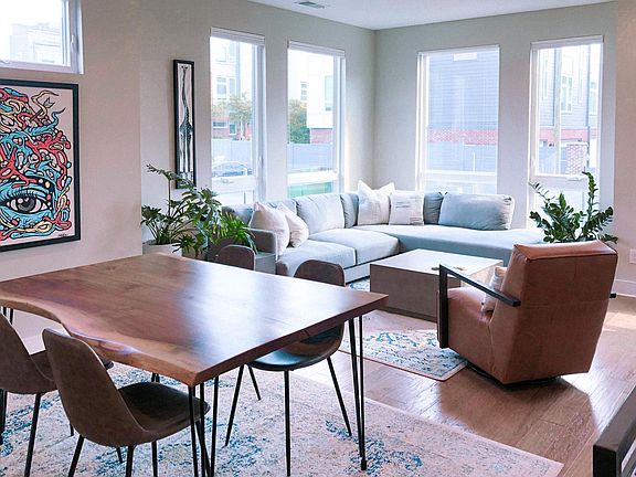 Great opportunity to rent a townhome in South End! This modern end unit has a large rooftop terrace with both skyline and sunset views. Steps to all the restaurants, breweries, and shops in South End, plus a 5 minute walk to the light rail and easy commute to Uptown. Open floor plan on main with tons of natural light. Tandem 2 car garage with mounted shelves and bike racks. Nest thermostats and Yale keypad lock for front door. Front door walks out to large green space. Great neighbors, a community dog park, and sidewalks. Monthly cleaning included and paid for by owners. Hardwoods throughout, KitchenAid stainless appliances, open shelving, quartz countertops, roll out pantry drawers, duel direction shades, and more. This end unit was the model home for the community so includes many upgrades - floors, finishes, blinds, etc. Renter responsible for electric and internet/cable (water is included in HOA, paid by owner). No smoking. 2 pet limit (dogs/cats). First month's rent plus security deposit due upfront. Year long initial lease, then month-to-month.