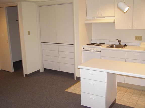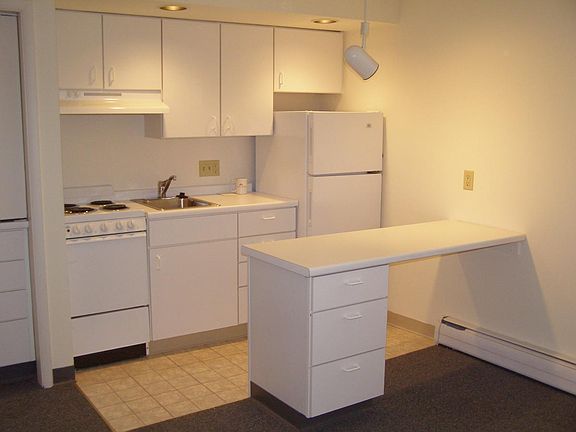 Second-floor studio located in a contemporary apartment building with wall-to-wall carpet; wall-unit air conditioning; modern kitchen with refrigerator and range; ample coin-operated laundry facilities in building; off-street parking available for an additional fee. Resident is responsible for electric. Heat is included in the rent. Off-street, uncovered parking: $50.00/month; Garages (where available): $115.00/month.