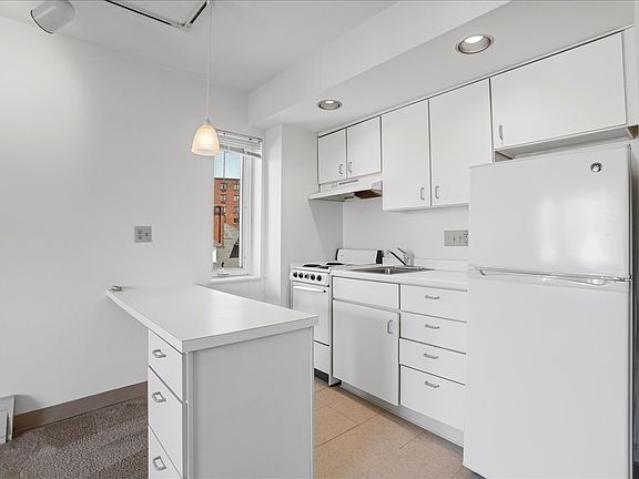 Third-floor residence located in a contemporary apartment building with wall-to-wall carpet; wall-unit air conditioning; modern kitchen with refrigerator and range; ample coin-operated laundry facilities in building; off-street parking available for an additional fee. Resident is responsible for electric. Heat is included in the rent. Off-street, uncovered parking: $50.00/month.
